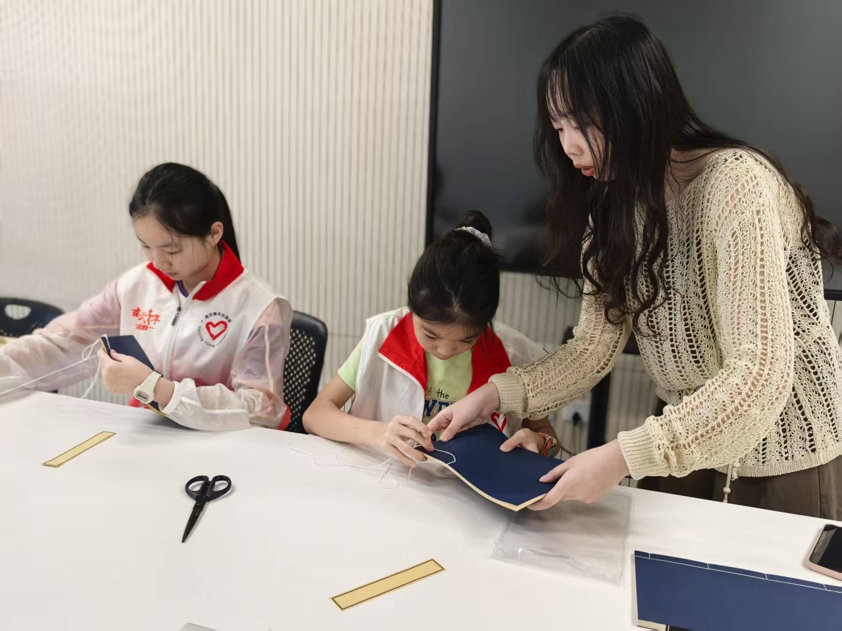 “经折装、蝴蝶装、线装,其实就像给书‘量体裁衣’。”老师一边示范,一边讲解。同学们在纸捻打眼、穿针引线中,完成了一本属于自己的“迷你古籍”。一位同学还兴奋地把作品举到镜头前:“我要把它带回家,做我的‘传家宝’!”