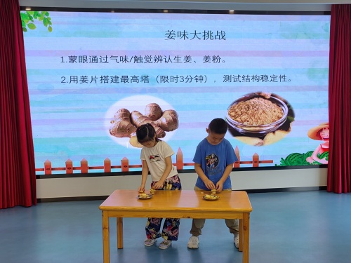 首先,老师以大暑的气候特点、饮食、地方习俗等话题,引导小读者们聊一聊自己脑海中与夏天有关的想法。接着,借助“姜味大挑战”“叠姜塔”小游戏、诗歌诵读,以及精彩的视频,小读者们逐渐深化了对大暑的感受和理解。