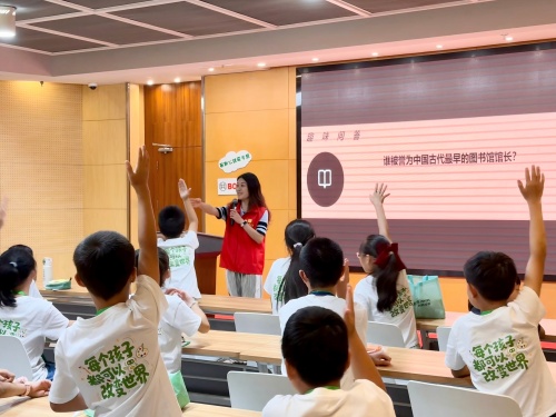 8月7日上午,金陵图书馆迎来了一群特殊的“小馆长”——21名流动儿童参加了“悦苗行动”第五期小馆长培训活动。本次活动以“探索知识殿堂 体验书香职业”为主题,通过知识课堂、实地探访、科技互动和职业体验等环节,让孩子们近距离感受图书馆的魅力,培养信息素养与公共服务意识。