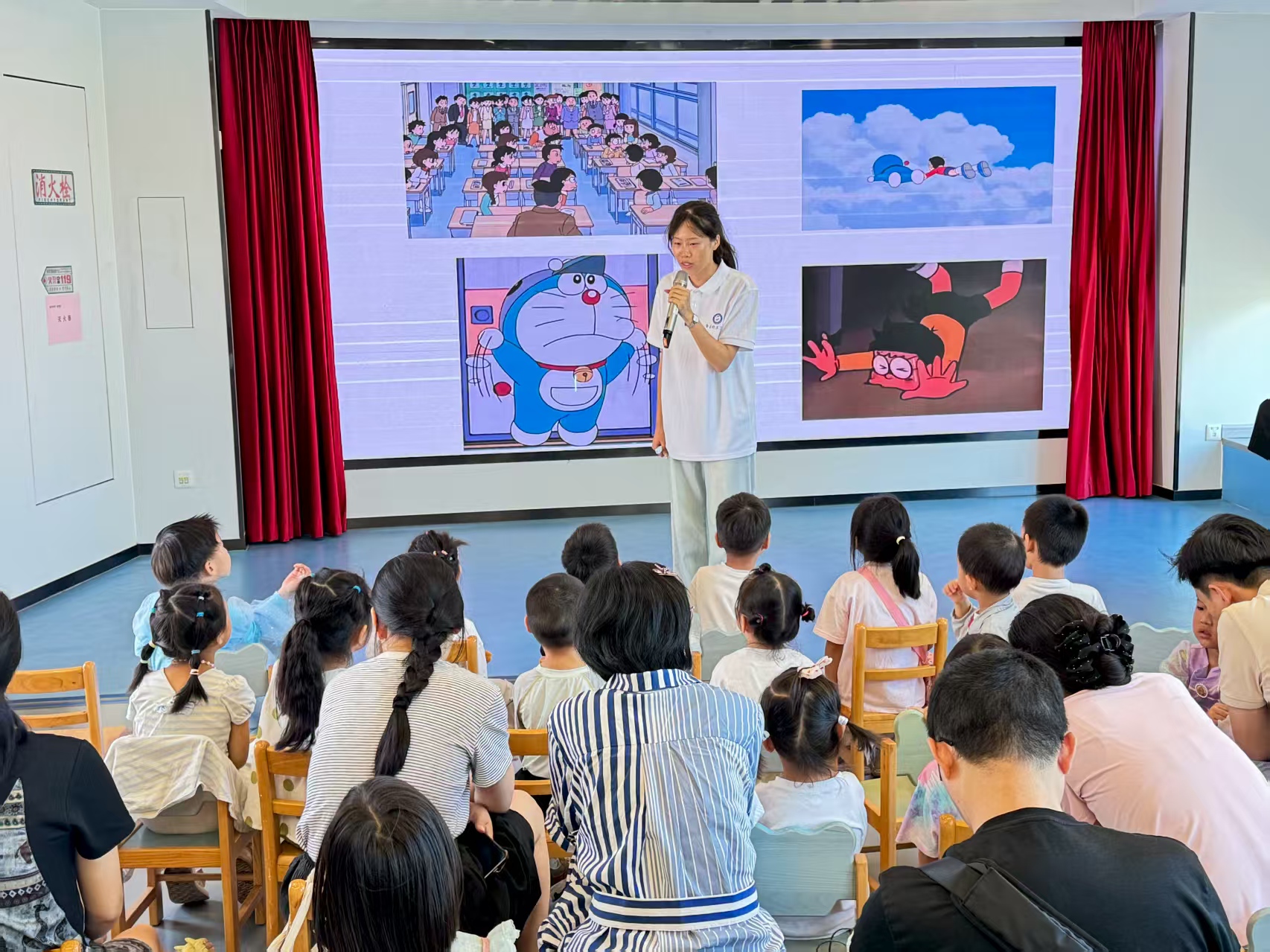 活动伊始,老师通过播放大家熟悉的动画片段来引入故事内容,直观生动的导入方式立即吸引了所有孩子的注意力。在讲解过程中,重点教授了"see""flop""fly"等与故事内容紧密相关的核心词汇,通过夸张的肢体动作和丰富的表情,帮助孩子们快速理解并记住这些单词。