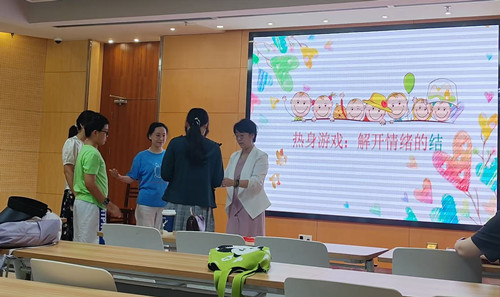 现场通过互动游戏破冰,以“解开情绪的结”让家长和孩子共同学习管理情绪的方法。在老师的指引下,家长和孩子通过小游戏,解开了亲子之间的绳结,互相坦露出心声,学会表达情绪。