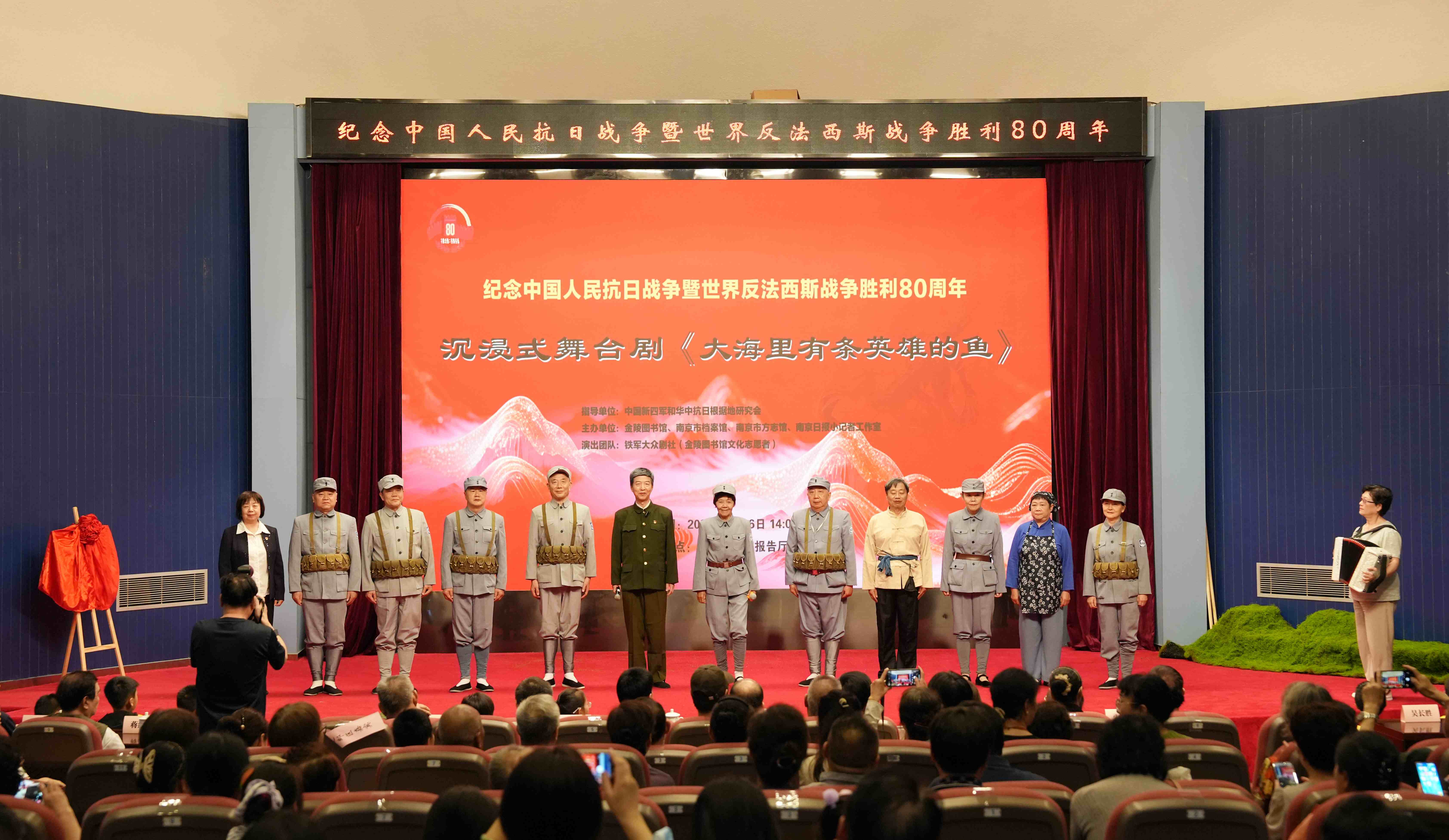 2025年是中国人民抗日战争暨世界反法西斯战争胜利80周年,为弘扬伟大抗战精神、铁军精神,传承优秀红色文化,8月16日下午,沉浸式舞台剧《大海里有条英雄的鱼》在金陵图书馆震撼上演。