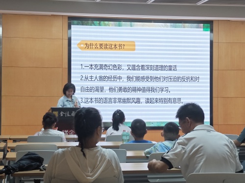 8月19日上午九点半,金陵图书馆多功能厅内书香弥漫,2025年“金桔童阅成长营·阅读记”第七课如约开启。以意大利经典童话《洋葱头历险记》为主题,资深阅读指导师小妍老师带领孩子们走进奇幻的“蔬菜水果王国”,在妙趣横生的冒险中领悟正义与团结的力量。