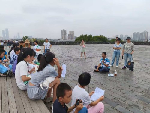 随后,仁和老师带领孩子们登上明城墙,带着孩子们远眺城外的大报恩寺塔、长干里以及雨花台的纪念碑和雨花阁等名胜古迹,并开始了诗词赏析的环节。老师带着孩子们赏析了四首诗词: