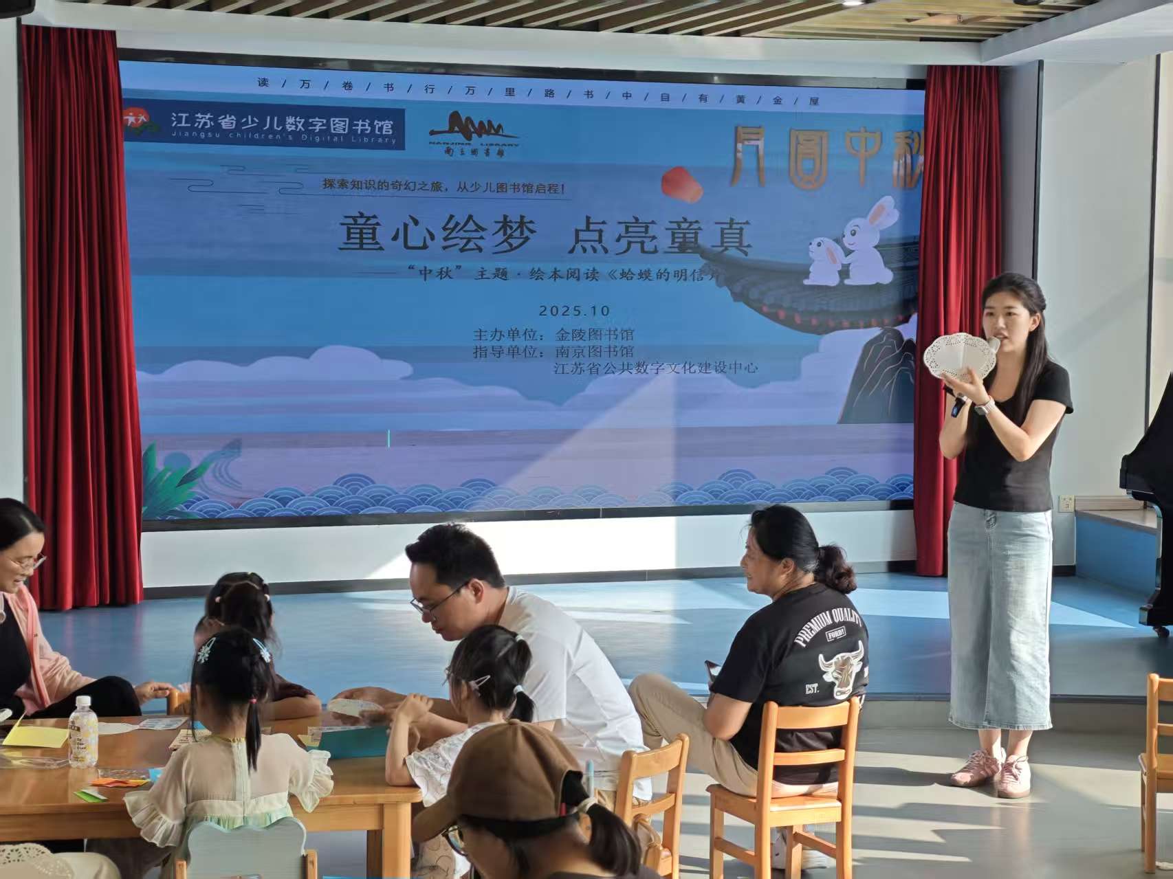 2025年10月5日下午3点,金陵图书馆一楼低幼绘本区的小舞台书香满溢,“童心绘梦 点亮童真”绘本阅读主题活动在这里精彩开启,小朋友们在欢声笑语中度过了一段美好的阅读时光。