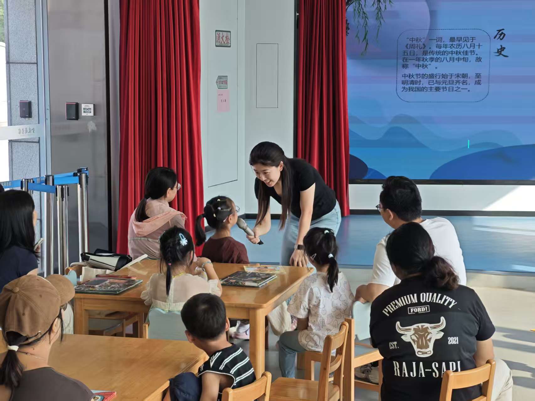 在互动猜谜环节,老师结合中秋节的主题提出了谜语。孩子们争先恐后地举手回答,现场气氛热烈。通过这个小互动,孩子们不仅增加了对中秋节传统文化的了解,还进一步激发了他们的参与热情。