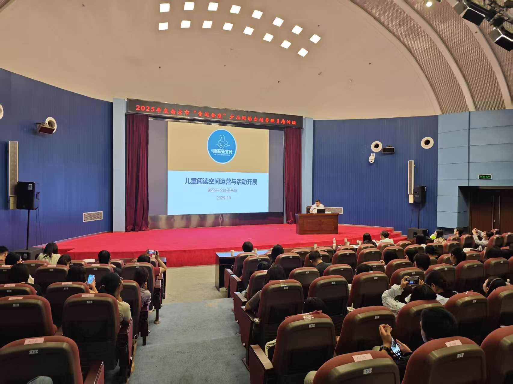 2025年10月11日,为提升全市少儿阅读空间管理员的业务能力,促进少儿阅读空间的规范管理和效能发挥,由南京市文化和旅游局主办,金陵图书馆承办的2025年南京市“童阅金陵”少儿阅读空间管理员培训班在金陵图书馆一楼报告厅成功举办。各区负责少儿阅读空间建设的工作人员、少儿阅读空间管理员等近200人参加了本次培训班,金陵图书馆少儿工作部主管张婕担任本次培训班主持人。