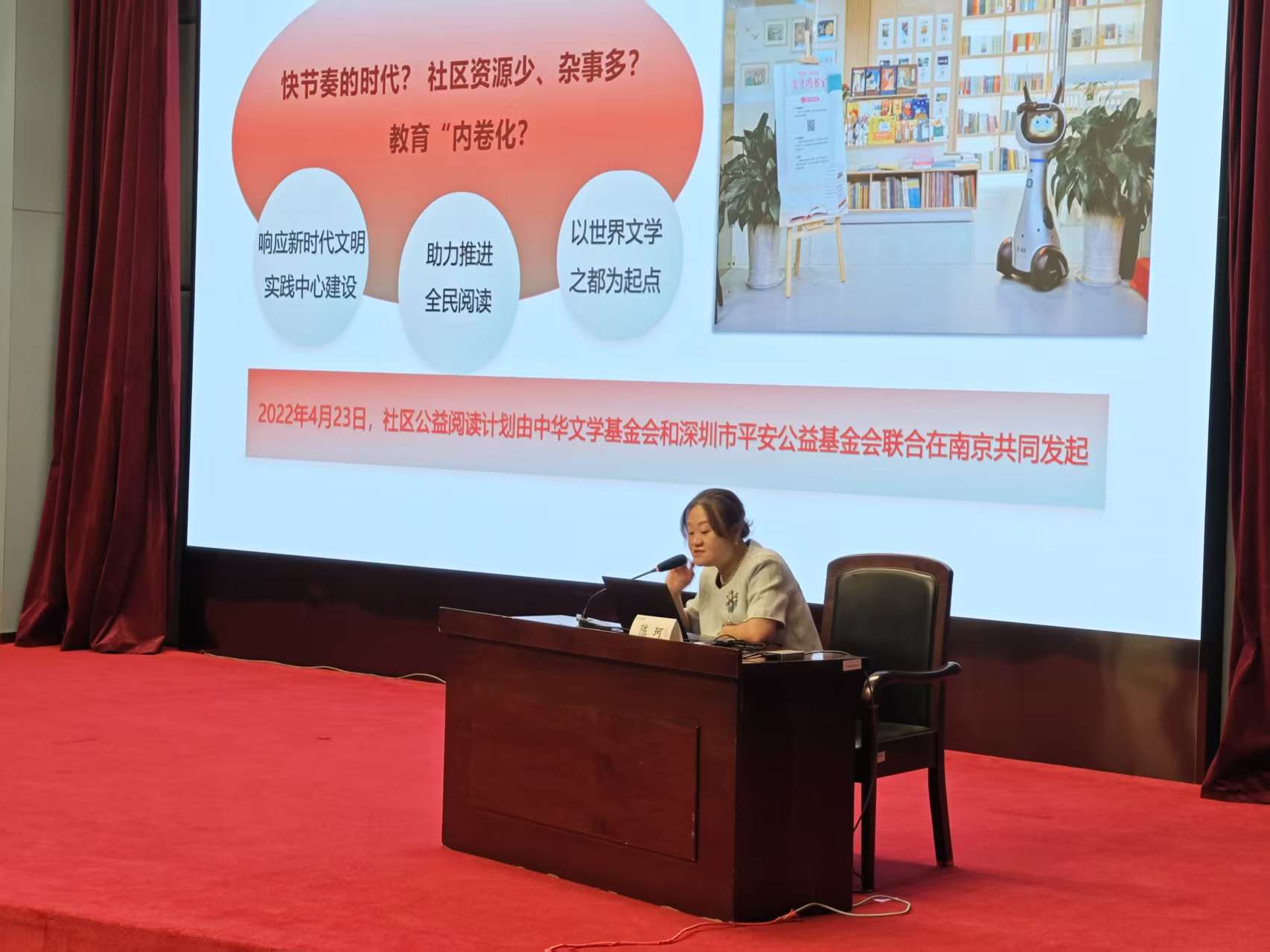玄武区新街口街道成贤街社区少儿阅读空间的分享者陈珂老师则分享了他们在“社区公益阅读服务”方面的经验。她从“让阅读触手可及”“让名家走进社区”“让亲子阅读浸润社区”三个角度,分享了少儿阅读空间活动组织与运营模式的经验,内容十分丰富。