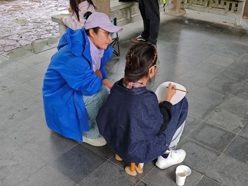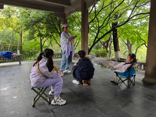 活动伊始,孩子们在老师的带领下漫步于古林公园的亭台水榭与嶙峋假山之间。在课程的讲授环节,老师为孩子们详细解析了国画技法,重点讲解了“皴、擦、点、染”等水墨技法。孩子们在老师的指导下,拿起画笔,开始尝试用水墨捕捉树木山石间的景色。他们时而凝神静思,时而大胆落笔,现场气氛热烈而又专注。通过实践,孩子们不仅掌握了基本的水墨技法,更深刻体会到了中国传统绘画的魅力。