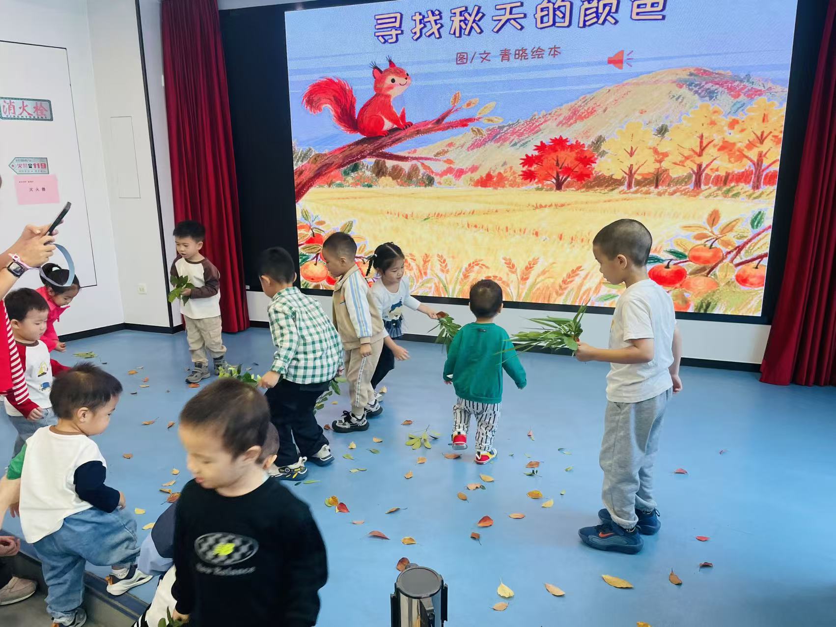 2025年10月18日上午10点,金陵图书馆“绘本之旅”在浓浓秋意中温暖开启。老师们将收集来的缤纷落叶铺满舞台,打造出一个童话般的秋日森林,带领小朋友们共读绘本《寻找秋天的颜色》。