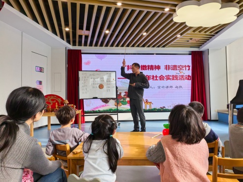 主讲老师赵凯是一位资深的空竹文化传播者,活动中,他从空竹的名称由来、历史渊源、种类演变等方面娓娓道来。空竹在全国各地有着不同的叫法:北京称“空钟”,天津叫“风葫芦”,四川称“响簧”,台湾地区叫“扯铃”,而在南京,人们更习惯称它为“嗡”,抖空竹也因此被称为“抖嗡”。