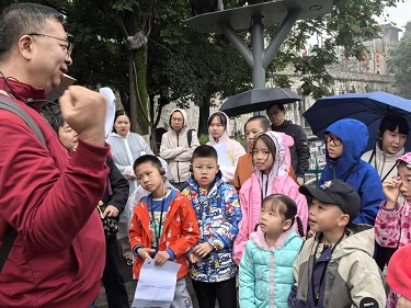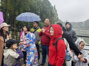 活动开始,仁和老师带领大家来到了桥面上,并介绍到,如今的东水关遗址公园由古桥、古河、古墙、古闸四部分组成,“古桥”指的是建于明初的九龙桥,就是我们现在脚下的这座桥。站在桥上,看到的这条河——秦淮河即是“古河”。放眼望去,“古墙”是指南京明城墙。“古闸”指的是上首闸与下首闸,下首闸建于清朝,用于调节内外秦淮河的水位差,民国时期又建了上首闸。