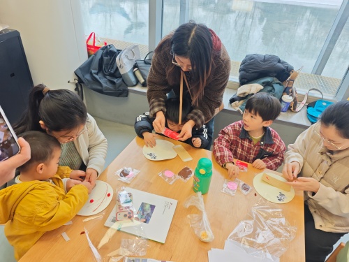 故事讲完后,老师带领孩子们进入了创意手工环节。大家利用准备好的粘土、各色彩笔和纸板,自由发挥想象。在家长们的协助下,孩子们亲手制作了各式各样的“冬至粘土画”,有红色的梅花,也有圆滚滚的饺子,现场充满了温馨与创造的乐趣。