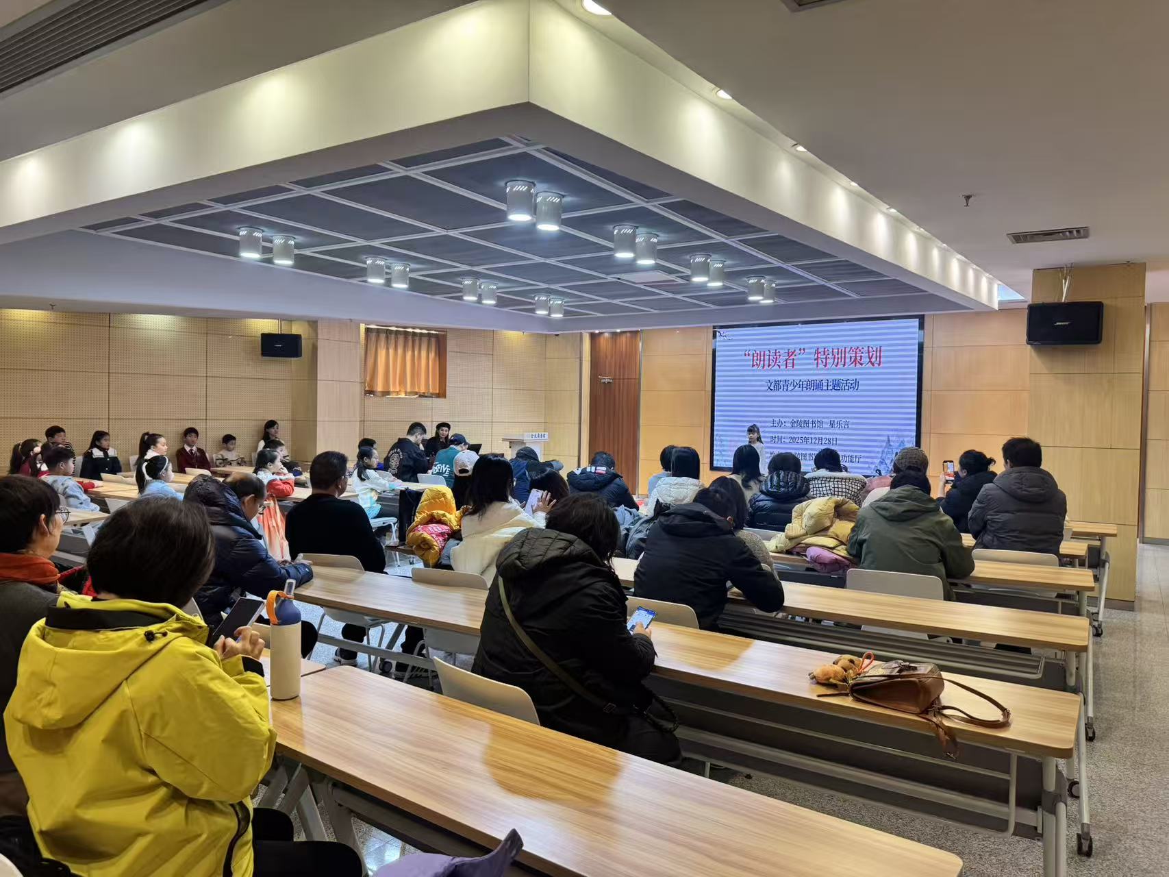 为深入推进全民阅读,培养青少年文学素养,2025年12月28日,金陵图书馆联合星乐言共同举办了“朗读者”特别策划:文都青少年朗诵主题活动。近200名小朗读者以真挚动人的声音演绎经典文学作品,在浓厚的书香氛围中,感受朗读之美。