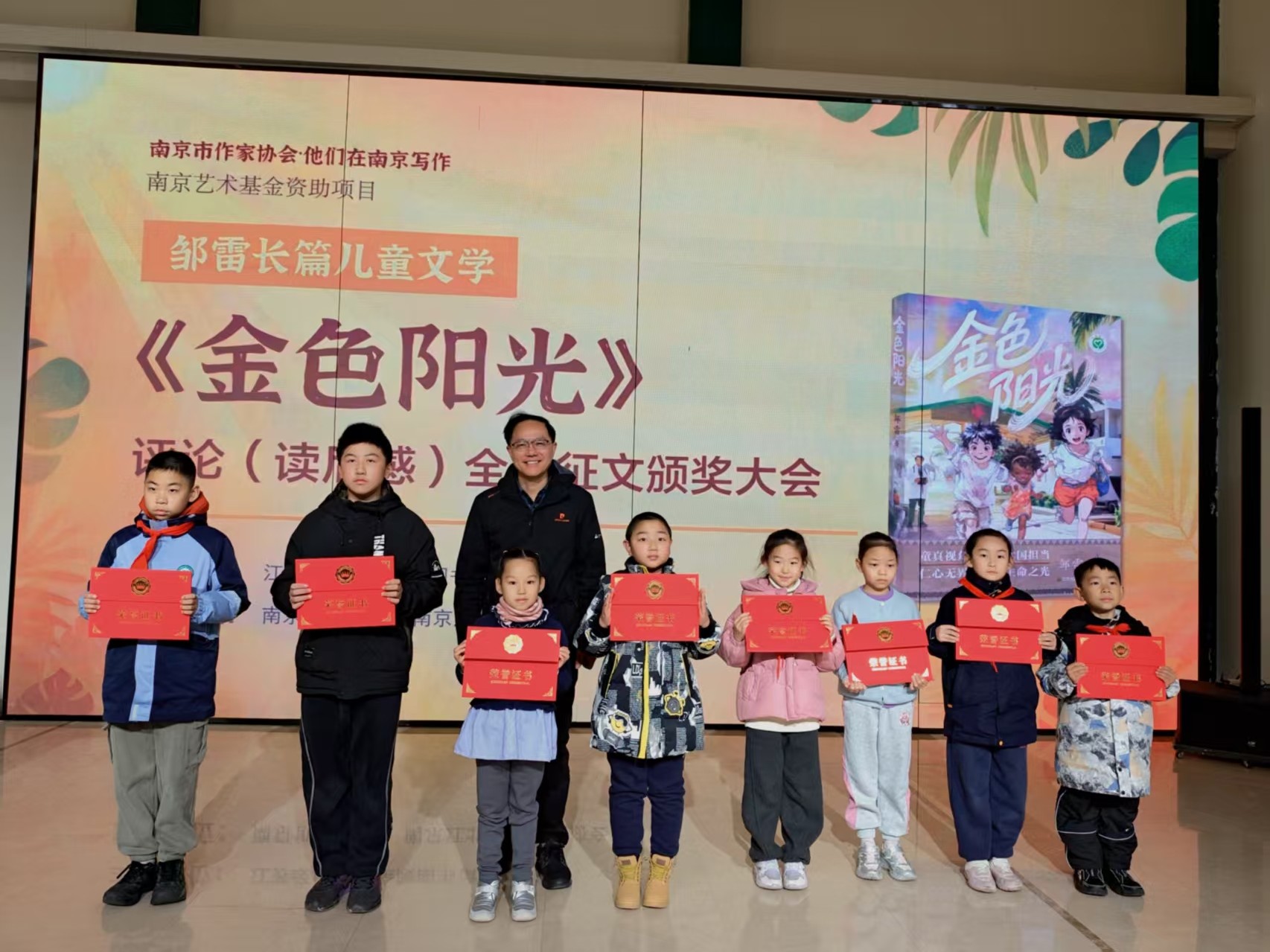 1月10日上午,长篇儿童文学《金色阳光》评论(读后感)全国征文大赛颁奖活动在南京圆满落幕。本次活动由江苏经济报、南京江北新区文联、金陵图书馆联合主办,南京创意中心、南京世界文学客厅、南京江北新区作家协会承办,旨在鼓励青少年及家庭通过深度阅读与创作,感悟家国情怀,致敬无私奉献精神。