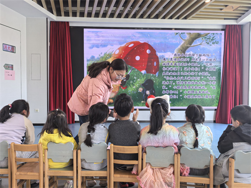 活动伊始,陈老师用生动形象的语言和丰富的肢体动作,将孩子们缓缓带入绘本《雨中的小红伞》的奇妙世界。故事中,热心的小刺猬撑起一把小红伞,在雨天里为朋友们四处奔走:它帮助小鼹鼠寻找新家、与小狐狸一起救助被困的小老鼠一家,还巧妙地帮助獾先生解决了屋顶漏水的难题。那一抹雨中的红色,不仅为小动物们遮风挡雨,更串联起了一个个关于关爱、协作与无私的温暖瞬间。孩子们瞪大好奇的眼睛,完全沉浸在小刺猬乐于助人的故事情节中,现场不时响起会心的笑声和积极的互动应答。