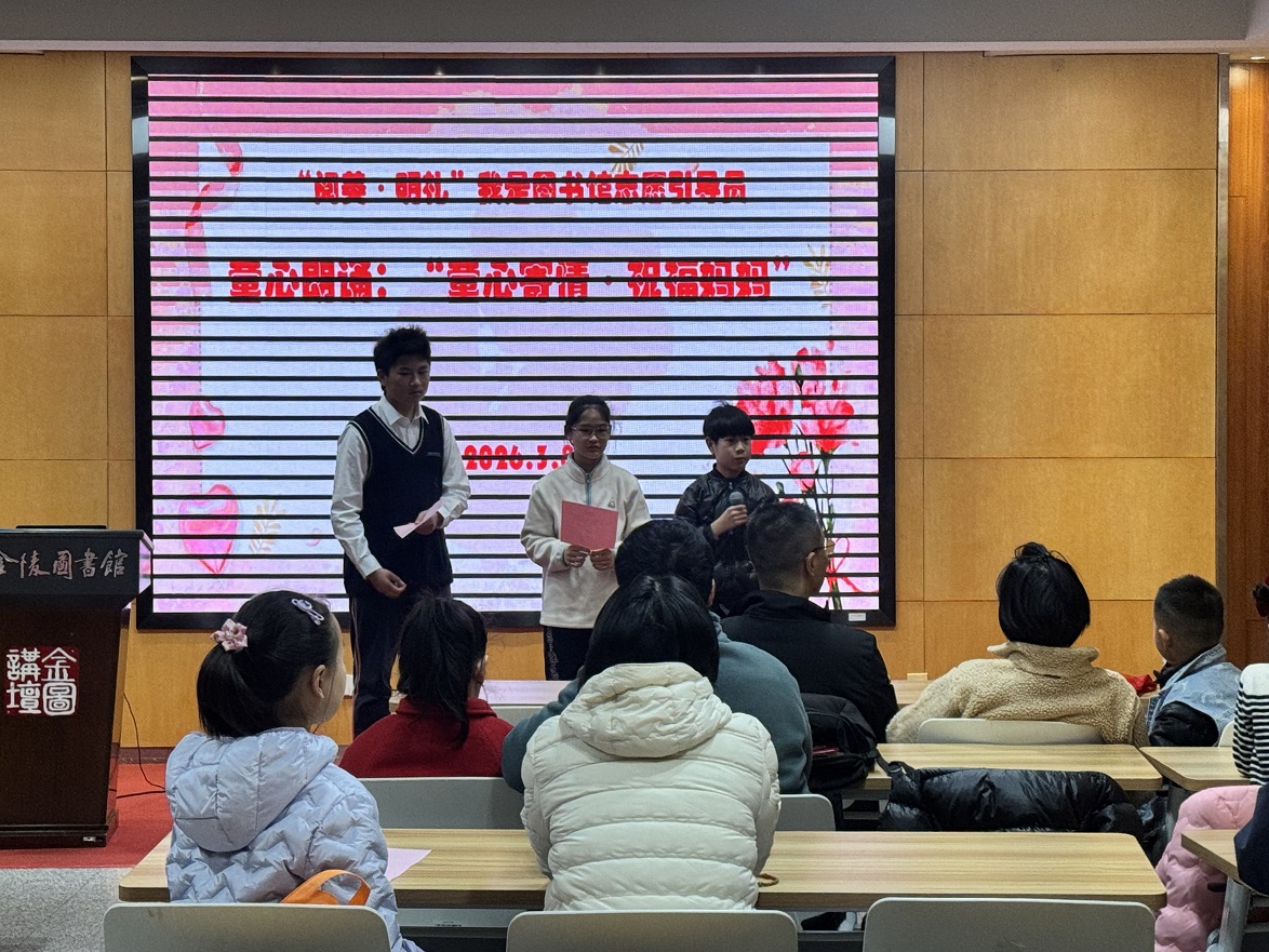 2026年3月8日,正值“三八”国际妇女节,金陵图书馆结合节日主题,举办了“阅美·明礼”我是图书馆志愿引导员专场活动。当天,由南京图书馆主办、金陵图书馆联合主办的“她力量——中国女性运动员的荣耀征途”主题展览也正在馆内展出。展览聚焦为中国各项目赢得首枚奥运金牌的杰出女性运动员们。她们不仅在赛场上创造了辉煌的成绩,更以女性的身份重新诠释了“力量”一词。她们在赛场上展现的不仅是高超的技术,更是坚韧的精神。这种精神,跨越时代,超越体育,成为激励全社会自信、自立、自强的强大动力。金陵图书馆社会活动部主任周樱格向小读者和家长们讲述了女性运动员们的奋斗故事,并与大家共同致敬每一份了不起的“她力量”。
