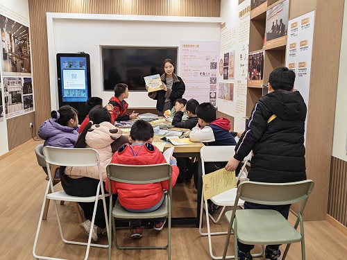 参观完成后,小读者有二十分钟的自由探索时间完成学习单。之后,我们在书城一楼的金陵图书馆分馆内集合。这一分馆内有金陵图书馆的馆情介绍、数字资源、古籍陈设和读者阅览区。大家围坐下来,展开了关于现代书城中新增的元素以及阅读适配度的激烈讨论,同时启发了小读者的深度思考,给出了各种出于意料的答案。讨论后,我们又开展了甲骨文的文字探秘游戏,寓教于乐,小读者们积极猜想,发散思维,争相回答,现场气氛浓烈。