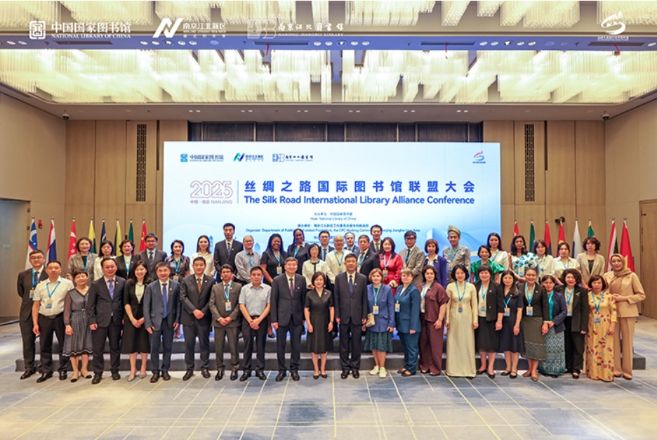 由国家图书馆主办、南京江北新区工作委员会宣传和统战部承办、南京江北图书馆协办的“2025年丝绸之路国际图书馆联盟大会”于2025年5月26日至29日在江苏省南京市举办,来自孟加拉国、伊朗、牙买加、老挝、马来西亚、蒙古、缅甸、俄罗斯、新加坡、斯里兰卡、泰国、特立尼达和多巴哥、乌兹别克斯坦、越南、中国等15个国家26个机构的80余位馆长和专家代表参加活动,金陵图书馆作为联盟成员馆受邀参会。