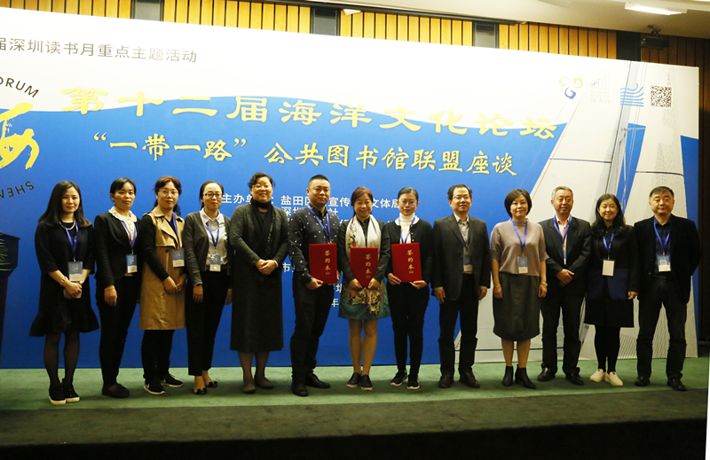 11月26日,由深圳市盐田区委宣传部(区文体局)、深圳晚报社、深圳读书月组委会办公室主办,盐田区图书馆承办的“第十二届海洋文化论坛”在深圳盐田举办,来自全国各地的海洋文化研究学者以及包括南京市多家区馆在内的二十余家公共图书馆代表,围绕“一带一路文化建设”进行了热烈而深入的探讨。金陵图书馆作为“‘一带一路’公共图书馆地区联盟”的主要成员馆之一受邀参加。金陵图书馆书记焦翔作为长三角地区联盟馆代表作交流发言,公共服务部主任孙振强、图书外借部副主任蔡毅、文创发展部副主任马骥、文创发展部汪然参与了论坛。