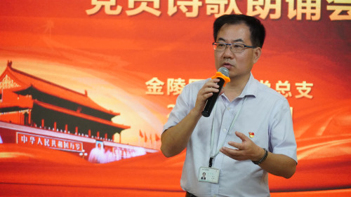 最后,尹士亮副书记和焦翔书记先后上台发表讲话,总结了“不忘初心、牢记使命”主题教育期间的工作和成果,通报了针对检视发现的问题将采取的整改措施和未来的相关计划安排,并对此次诗歌朗诵会的举办给予了肯定,鼓励馆员同志们积极参与类似活动,在展示自我的同时也有利于加深加强对党性修养和爱国主义的体悟,展现出新时代图书馆人澎湃的爱国爱党热情和饱满的精神风貌,为弘扬社会主义主旋律奉献一份力。