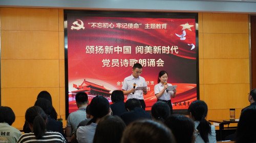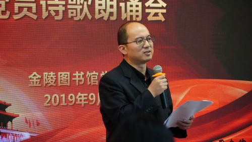 为贯彻落实习近平新时代中国特色社会主义思想和党的十九大精神,务实开展“不忘初心、牢记使命”主题教育,热烈庆祝中华人民共和国成立70周年,9月5日下午2:00,金陵图书馆“颂扬新中国 阅美新时代”诗歌朗诵会在一楼多功能厅成功举办。