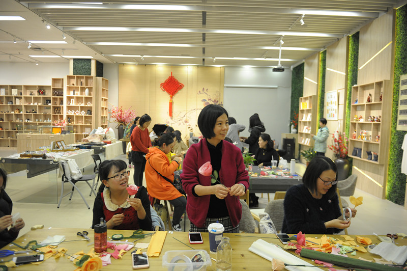 花,永远是女人最好的礼物。99元4束的鲜花包月,相信已经成为众多女性欲罢不能的一笔日常订单。然而鲜花易谢,总令人联想起时光易老。拒绝伤感留恋,不如自己动手创造永生。11月11日,金陵图书馆“妈妈学堂”帮助妈妈们从买买买的纷扰中抽身,以一节“蕙质兰心”——褶皱仿真花DIY课程为20余位女性读者定制图书馆双十一独一无二的浪漫。