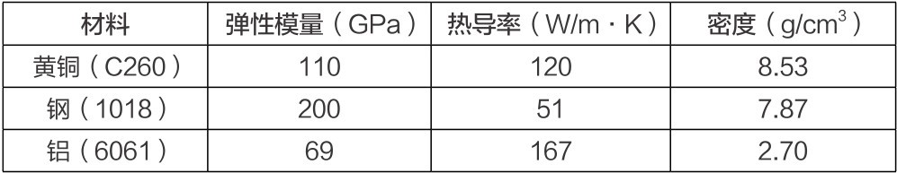 制造弹壳的黄铜、钢以及铝合金3种材料的性能对比表